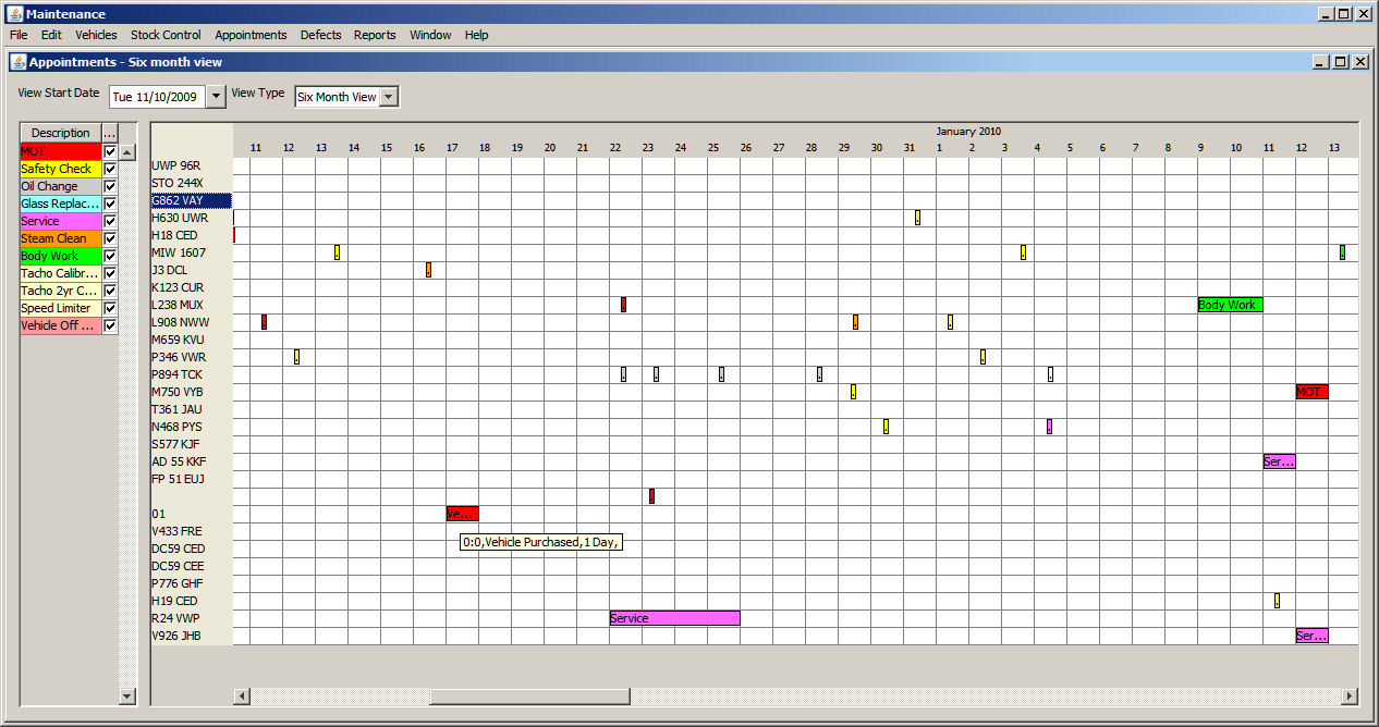 This section is a small showcase of a java program which I wrote to manage the maintenance of a small fleet of vehicles. This particular version didn't make it past alpha test as I changed technologies before completing it.